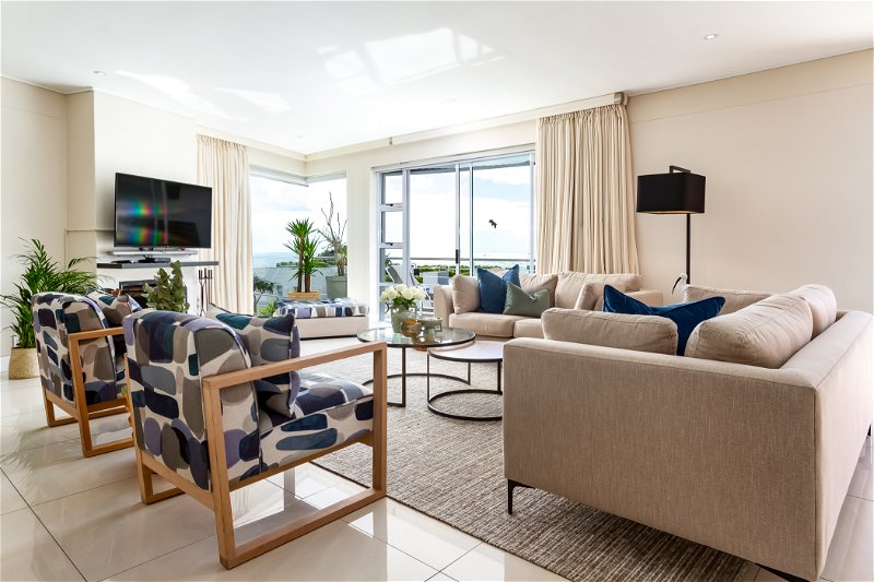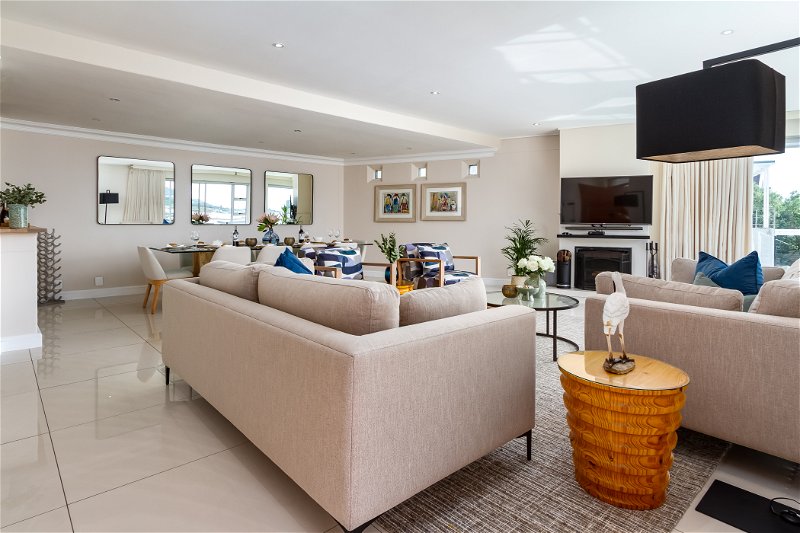 This stunning home offers 5 bedrooms - 4 bedrooms and a separate flatlet. Enjoy leisurely breakfasts, lazy summer lunches or romantic sun downers next to the lovely pool area which is designed for entertaining. Large living areas with a separate TV lounge ensures easy, sociable holiday living. There is a fully equipped kitchen as well as a gas barbecue for all your self catering needs. A washing machine and tumble dryer have been supplied for your convenience. It is a short, scenic walk to the many fine restaurants, trendy cafes and chic coffee shops on the internationally renowned Camps Bay Strip.
